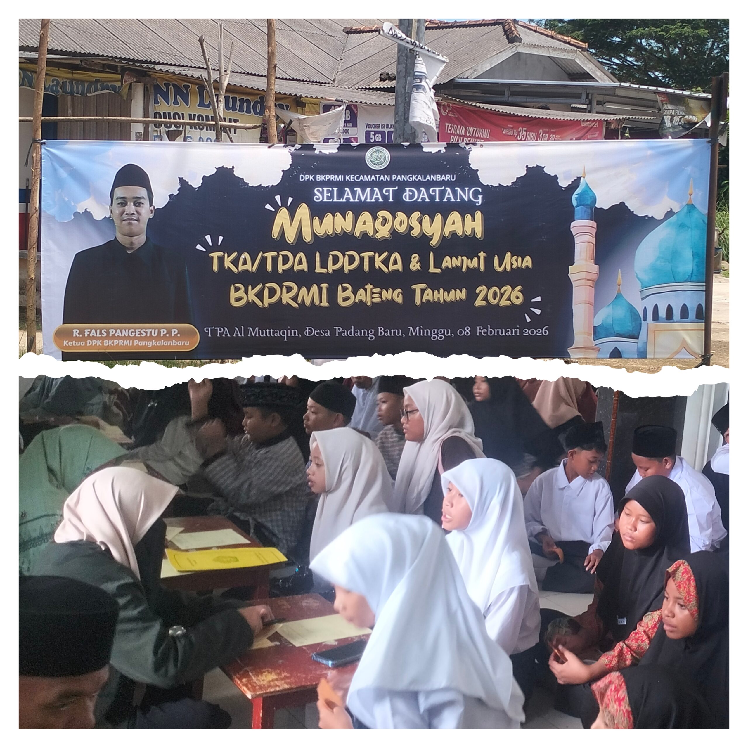 Bangka Tengah Pangkalan Baru Faktababelnews.id,Minggu 8/februari 2026 Kegiatan Munaqosyah yang digelar Dewan Pengurus Kecamatan (DPK) BKPRMI Pangkalan Baru berlangsung khidmat di TK Muttaqin, Desa Padang Baru, Kecamatan Pangkalan Baru, Kabupaten Bangka Tengah. Kegiatan ini diikuti ratusan peserta dari berbagai Taman Pendidikan Al-Qur’an (TPA) se-Kecamatan Pangkalan Baru.