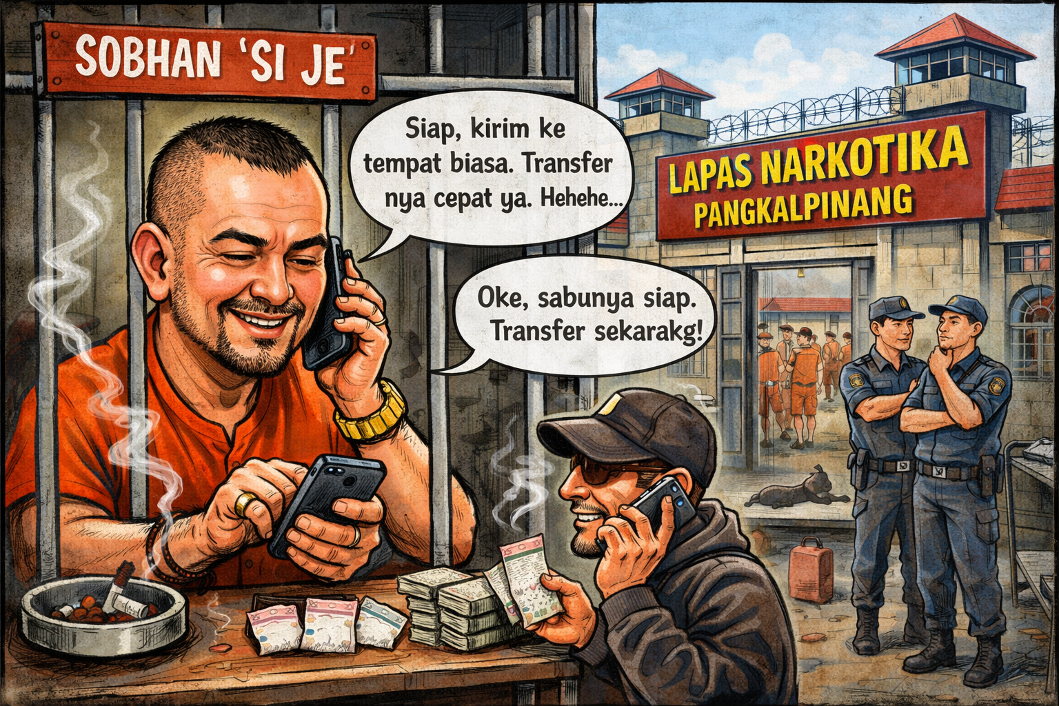 PANGKALPINANG ,Faktababelnews.id Dugaan bobolnya sistem pengamanan di Lapas Narkotika Kelas II A Pangkalpinang kini memicu kemarahan publik. Seorang warga binaan pemasyarakatan (WBP) berinisial Sobhan Jamil alias Si Je diduga masih leluasa mengendalikan peredaran narkotika jenis sabu dari dalam lapas.